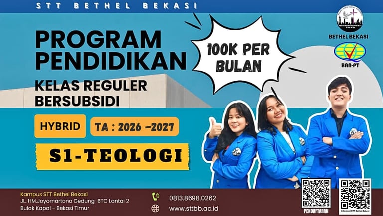 Hubungi Sekolah Tinggi Teologi Bethel Bekasi untuk info pendaftaran.